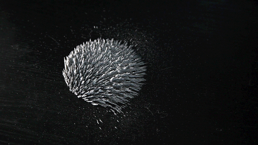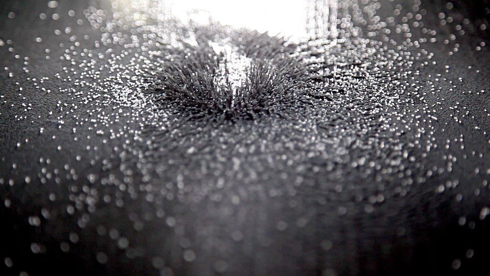 "Riding electromagnetic currents, whirling the void" is a collaborative project made as open*cluster, that was presented at Xlab Berlin on 27.03.13 . We experimented with iron powder and ferrofluid for a few days to create the visual material for the performance. Setup is 2 beamers connected to two different computers, using the same video material but being independently controlled.